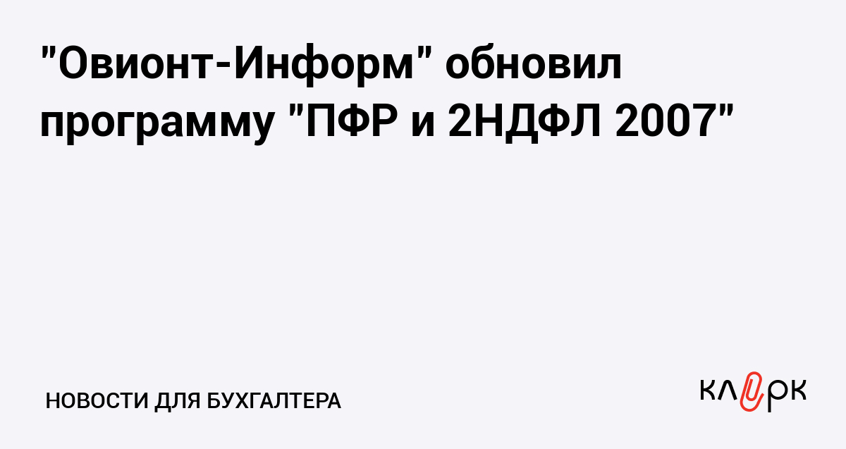 "Овионт-Информ" обновил программу "ПФР и 2НДФЛ 2007"