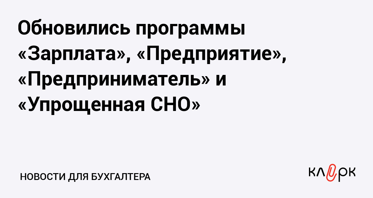 Обновились программы «Зарплата», «Предприятие», «Предприниматель» и «Упрощенная СНО»