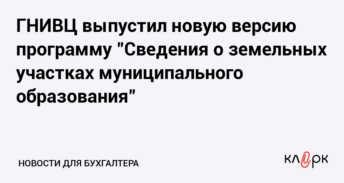 ГНИВЦ выпустил новую версию программу "Сведения о земельных участках муниципального образования"