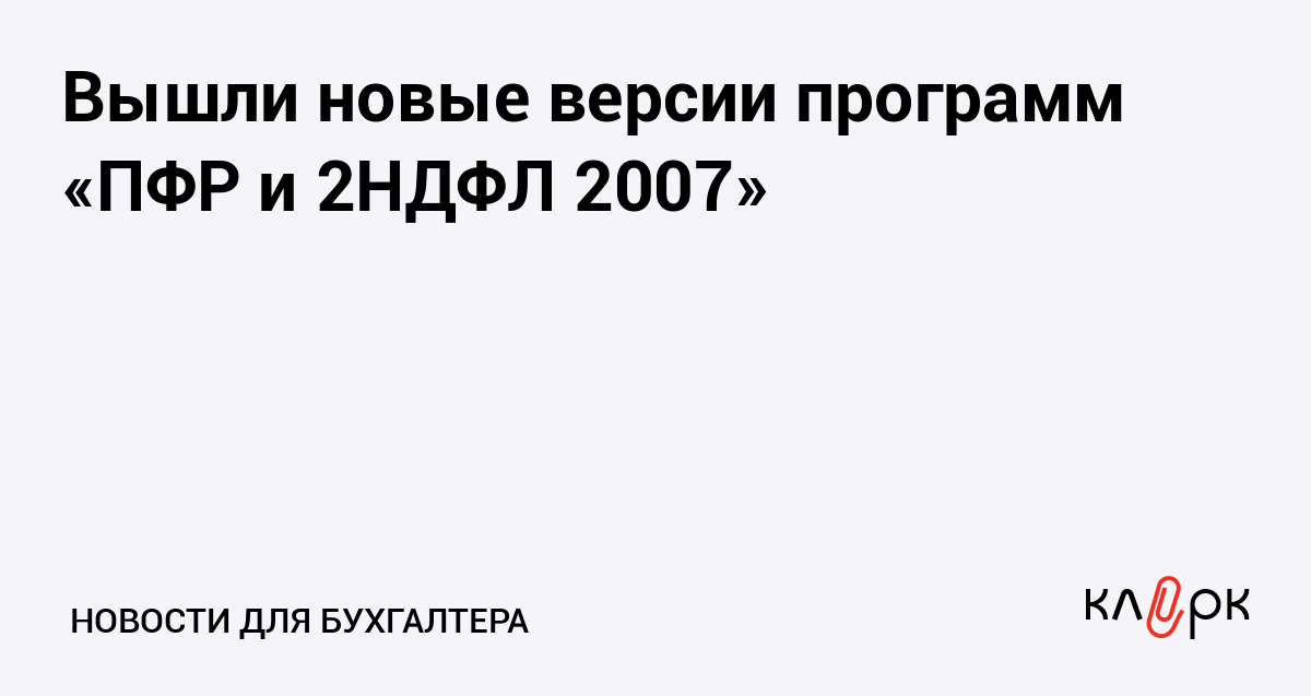 Вышли новые версии программ «ПФР и 2НДФЛ 2007»