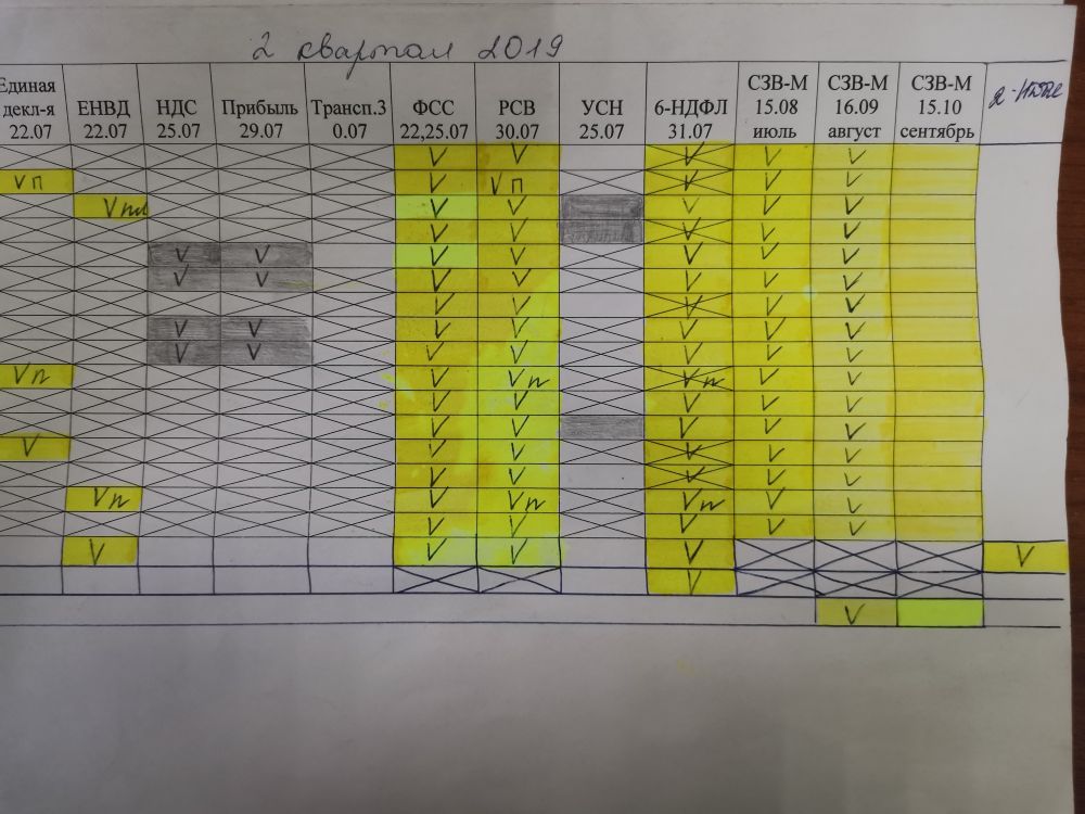 У меня тоже табличка в экселе. Отчет сделан закрашиваю, пришел протокол поверх ставлю галочку.
