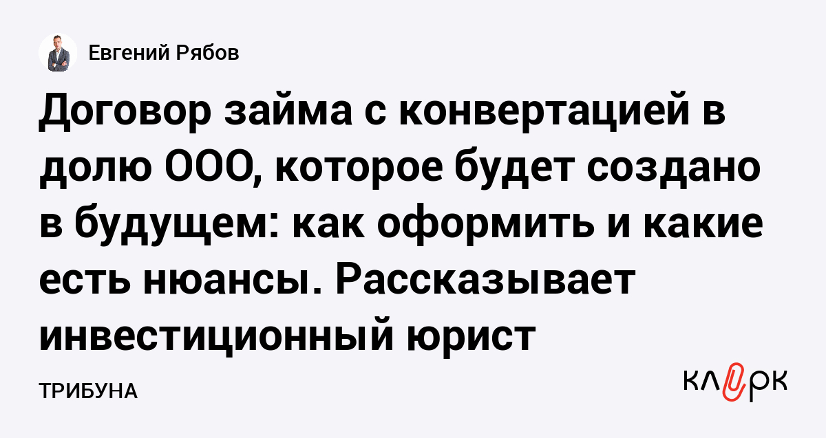 Договор займа с конвертацией в долю ООО, которое будет создано в будущем: как оформить и какие есть нюансы. Рассказывает инвестиционный юрист