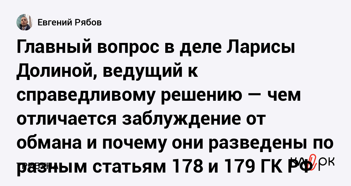 Главный вопрос в деле Ларисы Долиной, ведущий к справедливому решению — чем отличается заблуждение от обмана и почему они разведены по разным статьям 178 и 179 ГК РФ