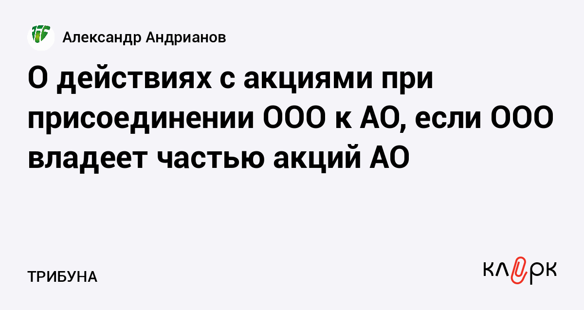 О действиях с акциями при присоединении ООО к АО, если ООО владеет частью акций АО