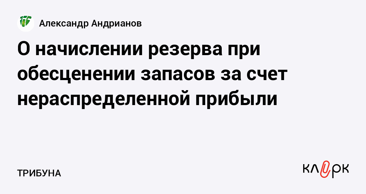 О начислении резерва при обесценении запасов за счет нераспределенной прибыли