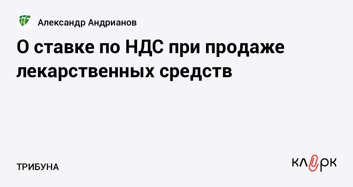 «В соответствии с подпунктом 4 пункта 2 и пунктом 5 статьи 164 Налогового кодекса Российской Федерации (далее - Кодекс) операции по реализации лекарственных средств (включая фармацевтические субстанции, лекарственные средства, предназначенные для проведения клинических исследований лекарственных препаратов, и лекарственные средства, изготовленные аптечными организациями) подлежат налогообложению налогом на добавленную стоимость по ставке в размере 10 процентов по перечню, утверждаемому Правительством Российской Федерации.