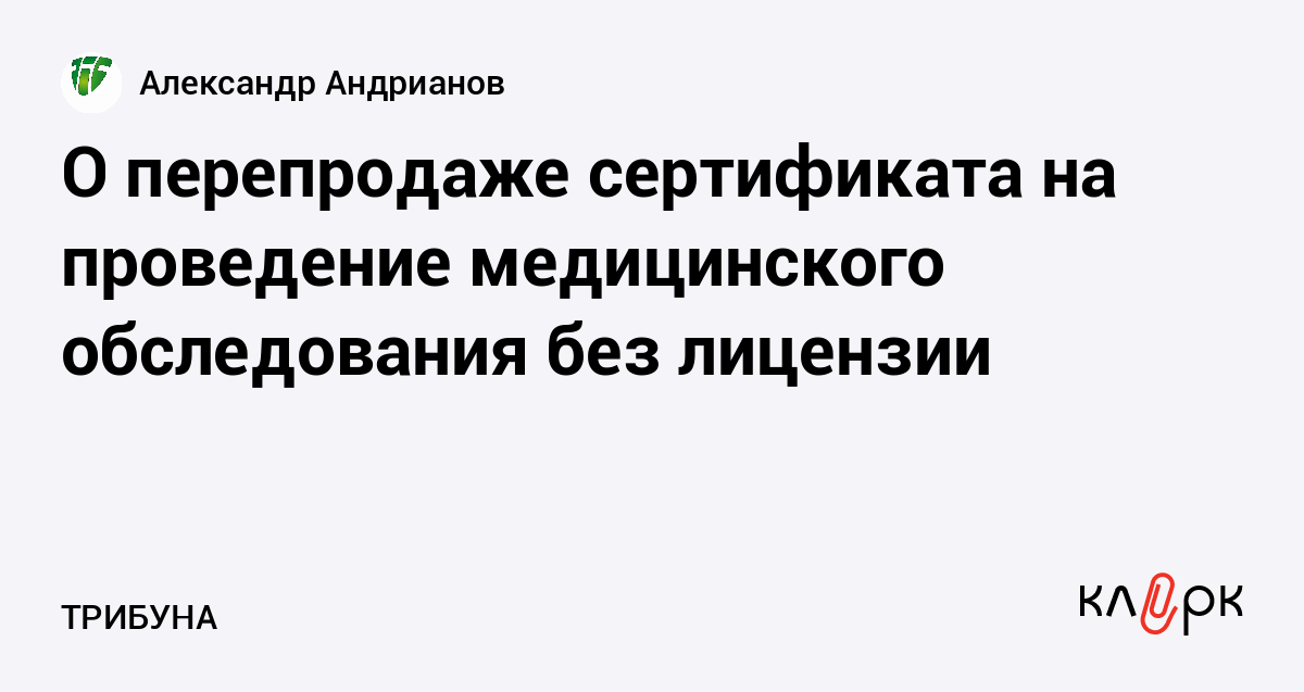 О перепродаже сертификата на проведение медицинского обследования без лицензии