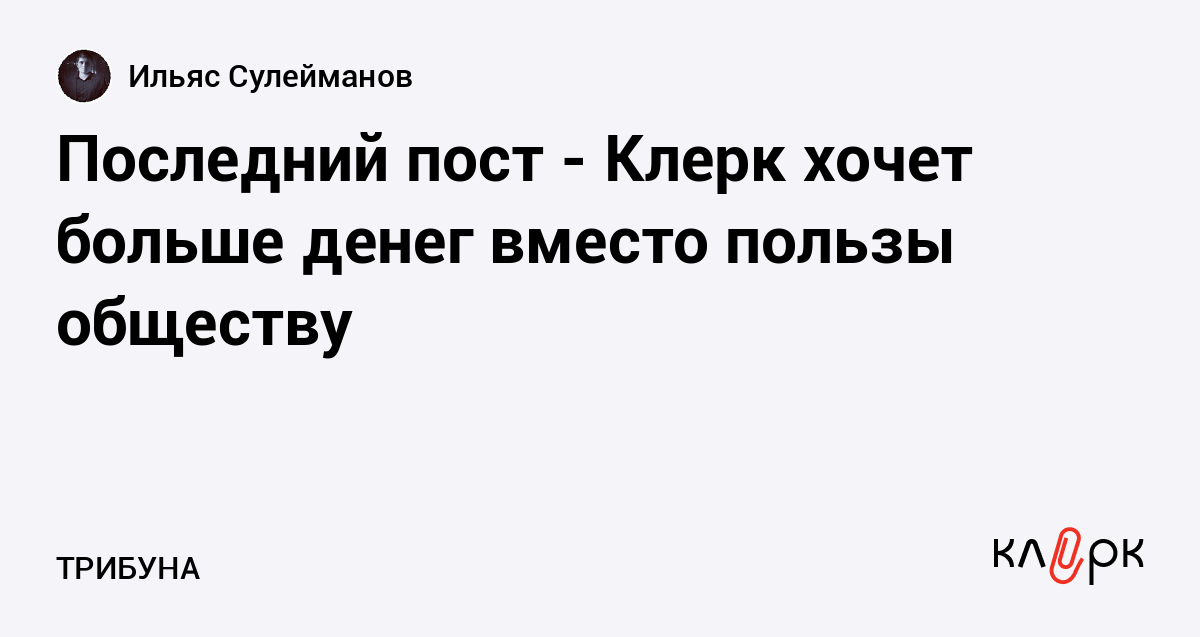 Последний пост - Клерк хочет больше денег вместо пользы обществу