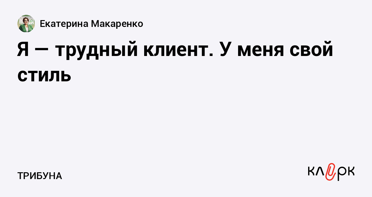 Я — трудный клиент. У меня свой стиль
