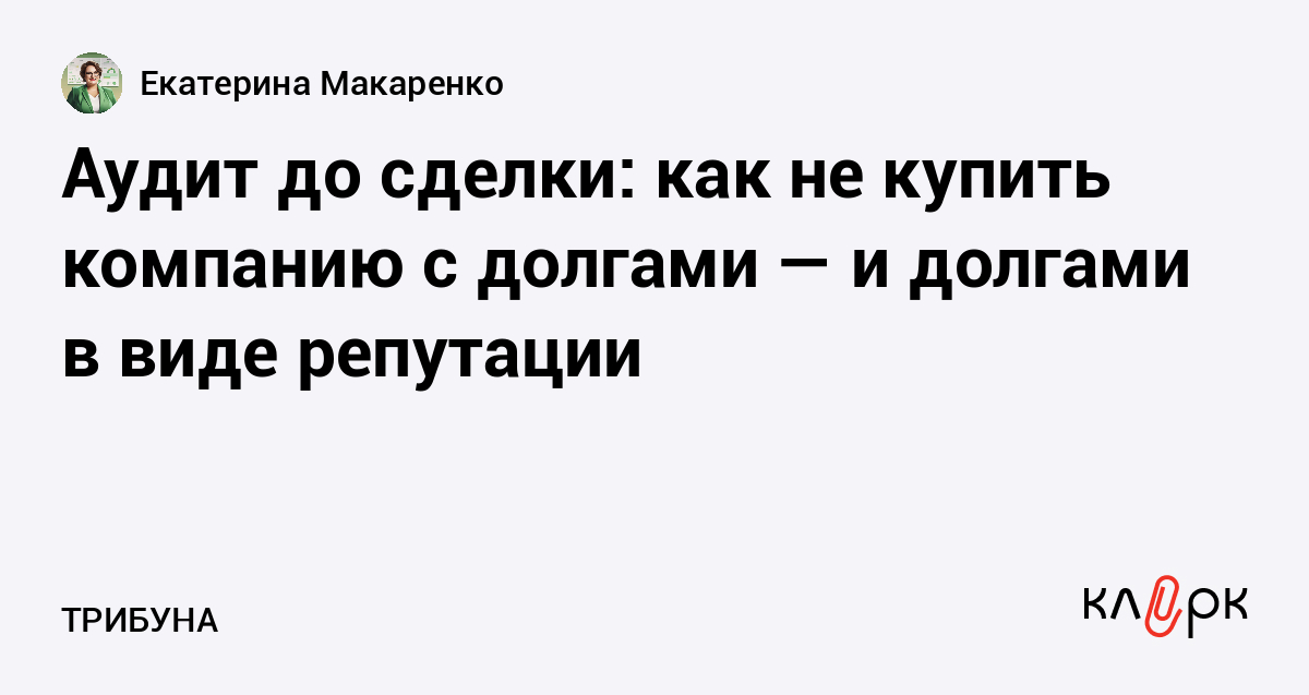 Аудит до сделки: как не купить компанию с долгами — и долгами в виде репутации