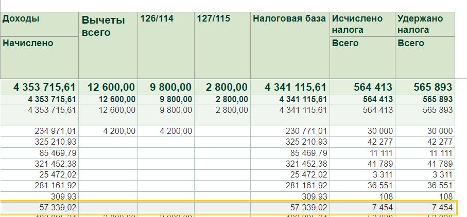 Посмотрела анализ по документам-основаниям, пересчитала и поняла цифры в НДФЛ. Вопрос можно закрыть)