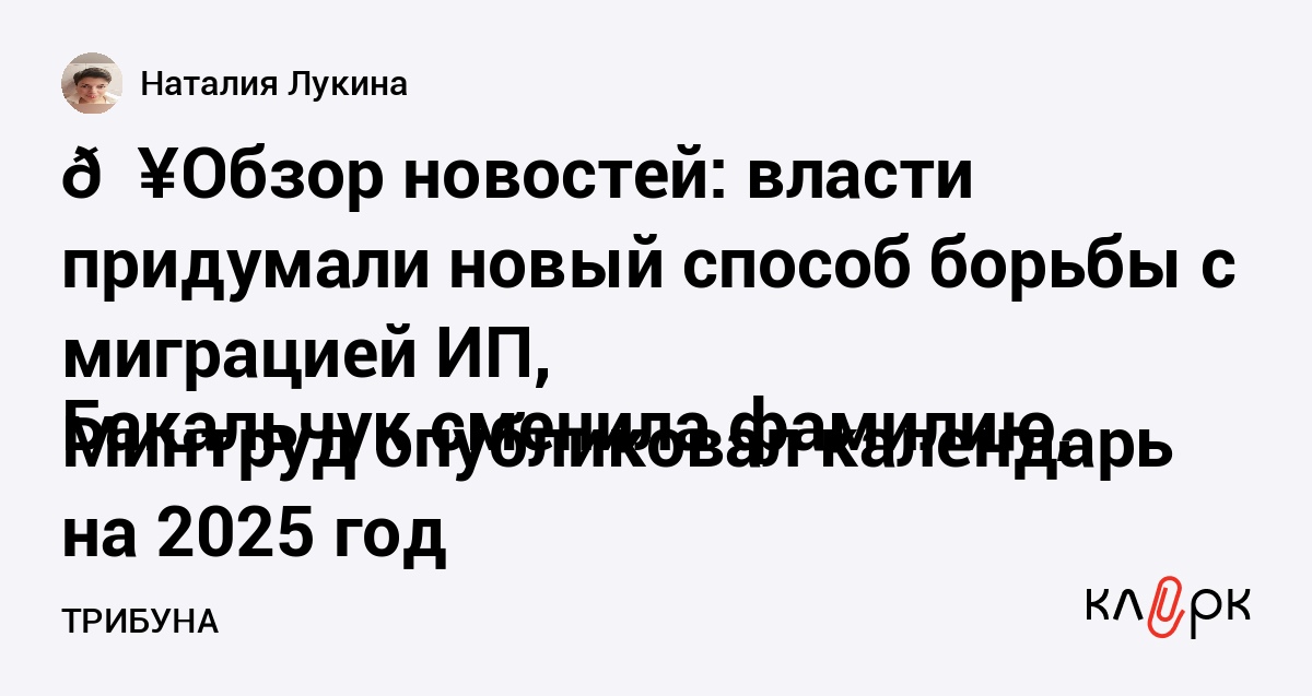 💥Обзор новостей: власти придумали новый способ борьбы с миграцией ИП, Бакальчук сменила фамилию, Минтруд опубликовал календарь на 2025 год