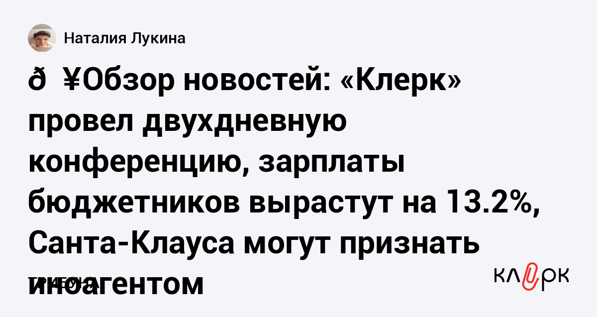 💥Обзор новостей: «Клерк» провел двухдневную конференцию, зарплаты бюджетников вырастут на 13.2%, Санта-Клауса могут признать иноагентом