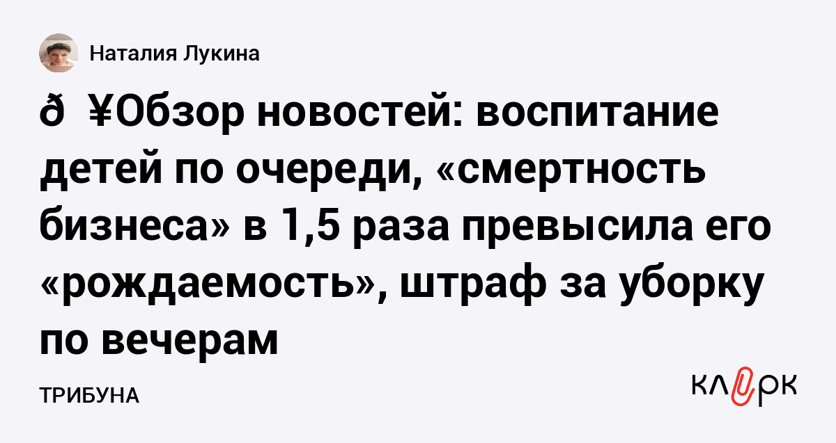 💥Обзор новостей: воспитание детей по очереди, «смертность бизнеса» в 1,5 раза превысила его «рождаемость», штраф за уборку по вечерам