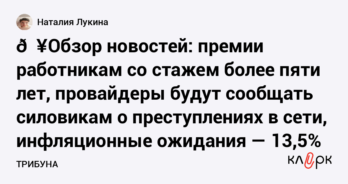 💥Обзор новостей: премии работникам со стажем более пяти лет, провайдеры будут сообщать силовикам о преступлениях в сети, инфляционные ожидания — 13,5%