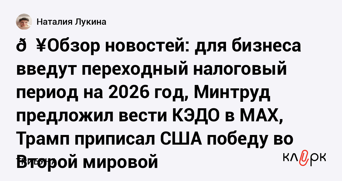 💥Обзор новостей: для бизнеса введут переходный налоговый период на 2026 год, Минтруд предложил вести КЭДО в МАХ, Трамп приписал США победу во Второй мировой