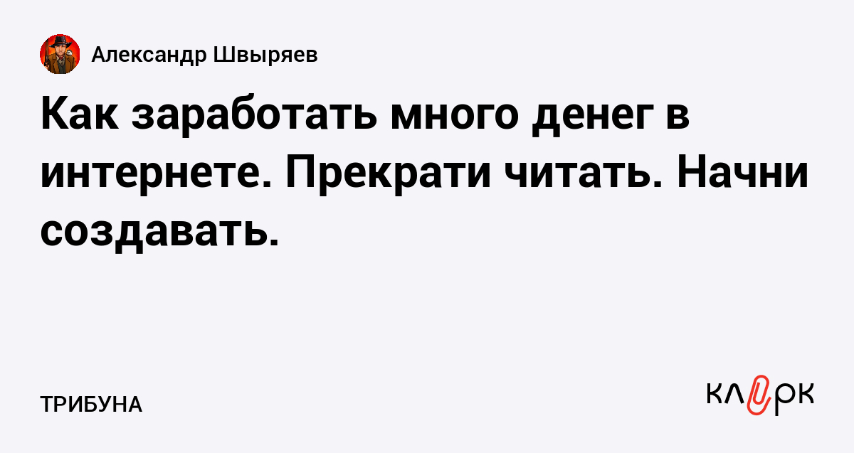 Как заработать много денег в интернете. Прекрати читать. Начни создавать.