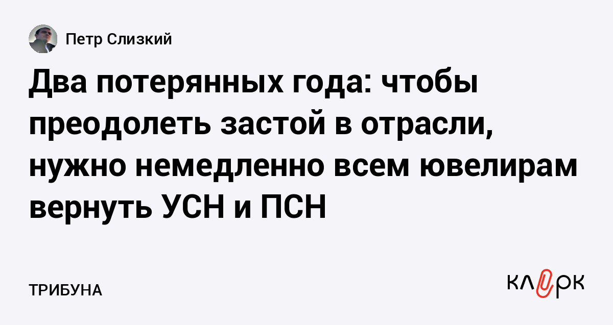 Два потерянных года: чтобы преодолеть застой в отрасли, нужно немедленно всем ювелирам вернуть УСН и ПСН