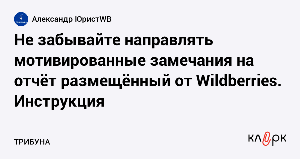 Не забывайте направлять мотивированные замечания на отчёт размещённый от Wildberries. Инструкция