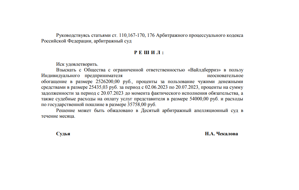 Юрист по Wildberries выиграл очередной cуд с Вайлдберриз на 2 500 000 р., оспорив штрафы за ИМИЗР и иные удержания WB