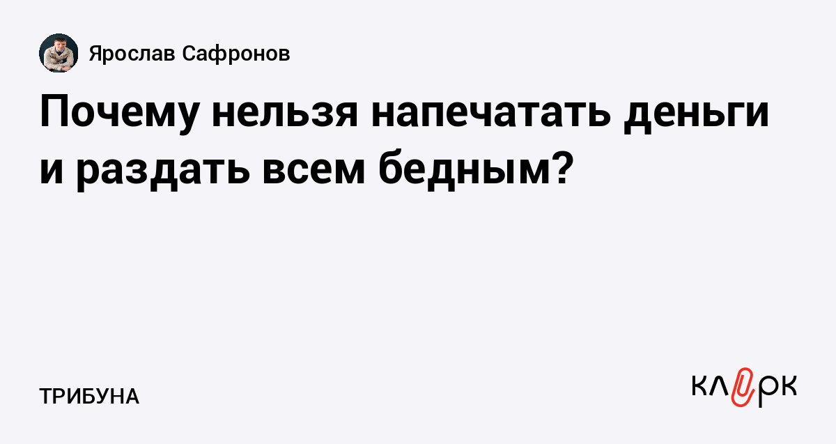 Почему нельзя напечатать деньги и раздать всем бедным?