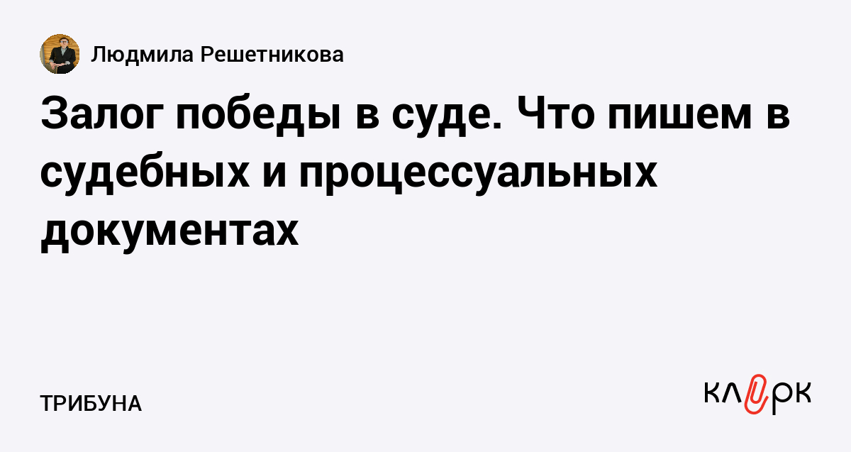 Залог победы в суде. Что пишем в судебных и процессуальных документах