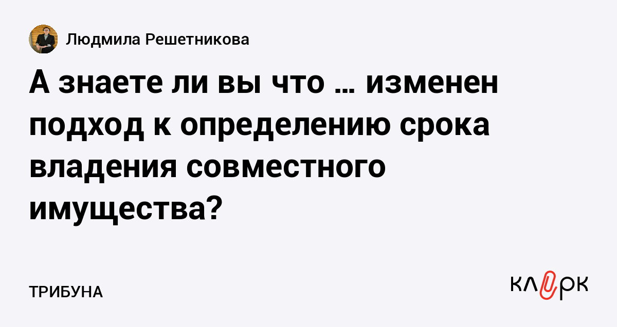 А знаете ли вы что … изменен подход к определению срока владения совместного имущества?