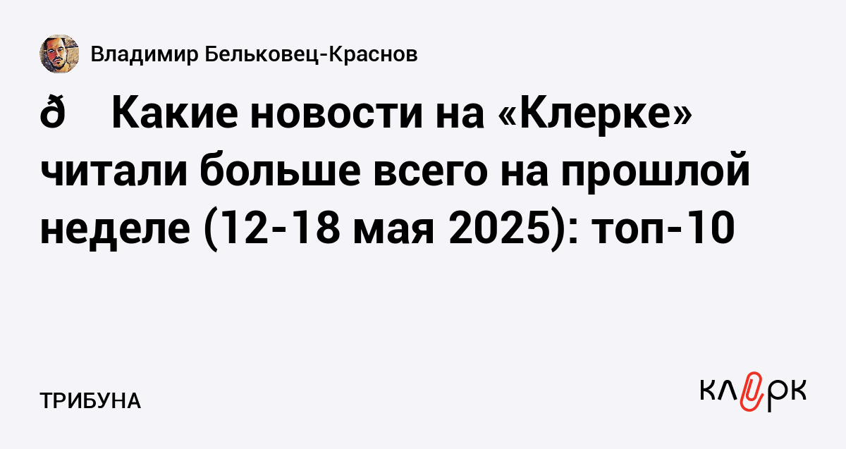👓 Какие новости на «Клерке» читали больше всего на прошлой неделе (12-18 мая 2025): топ-10