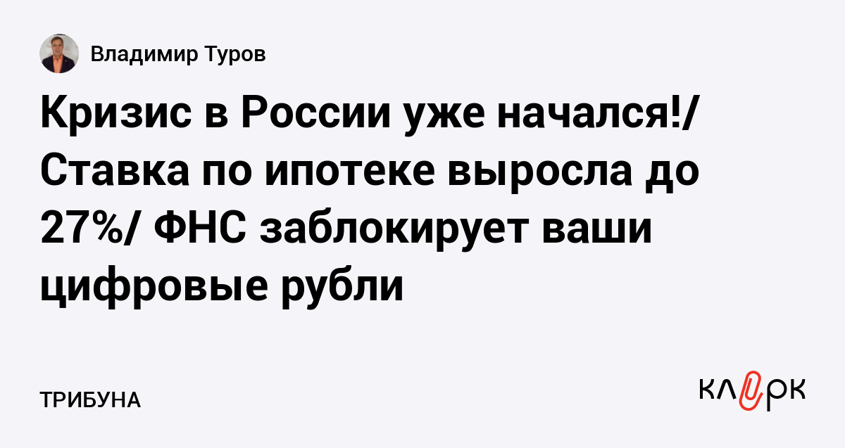 Кризис в России уже начался!