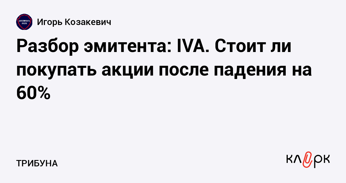 Разбор эмитента: IVA. Стоит ли покупать акции после падения на 60%