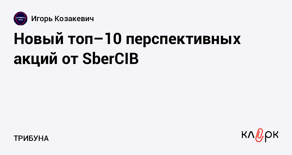Говорят, что это не инвестиционная рекомендация. Мой долгосрочный публичный инвестиционный портфель максимально приближен к новому прогнозу от SberCIB - 7 позиций из 10 присутствуют в нем.