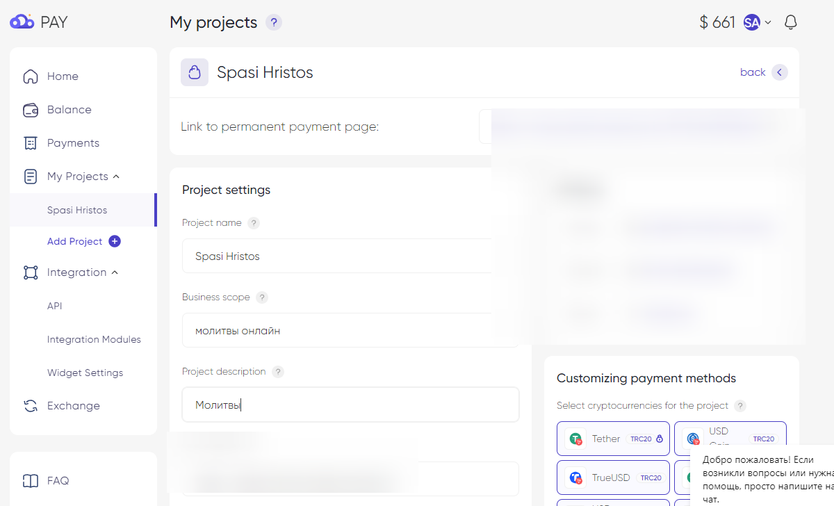 Приняли платеж биткоином, очень обрадовал сервис. Поддержка быстро отвечает, никаких нареканий