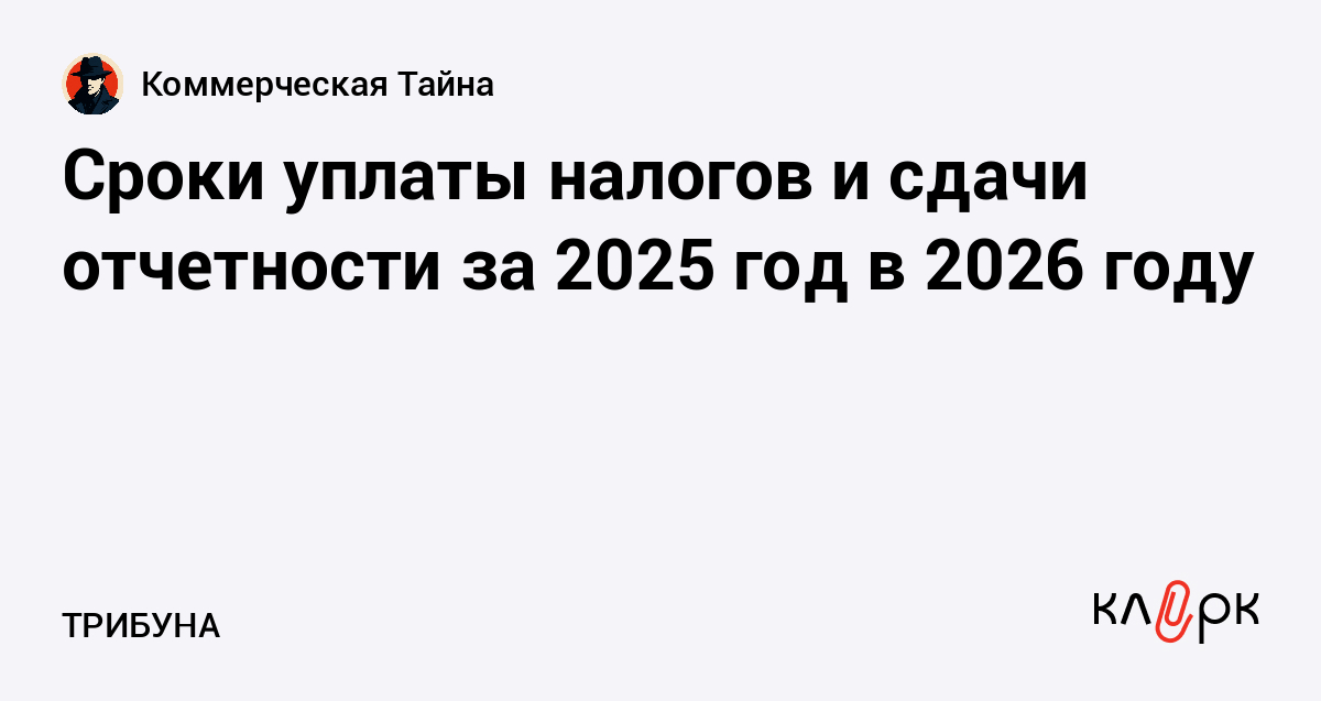 Сроки уплаты налогов и сдачи отчетности за 2025 год в 2026 году