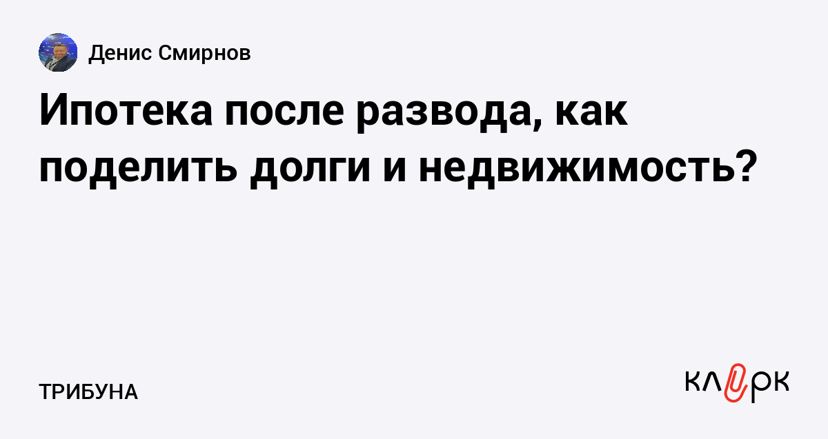 Закон гласит, что нажитое в браке имущество считается совместным, если иное не прописано в брачном договоре. То есть при разводе каждый супруг получает право на половину недвижимости и половину долга. Конечно, можно пойти в суд и попросить его поделить всё не поровну, например увеличить долю в квартире в интересах несовершеннолетних детей, но на практике такие разбирательства длятся годами и решения по ним могут не удовлетворить обе стороны.