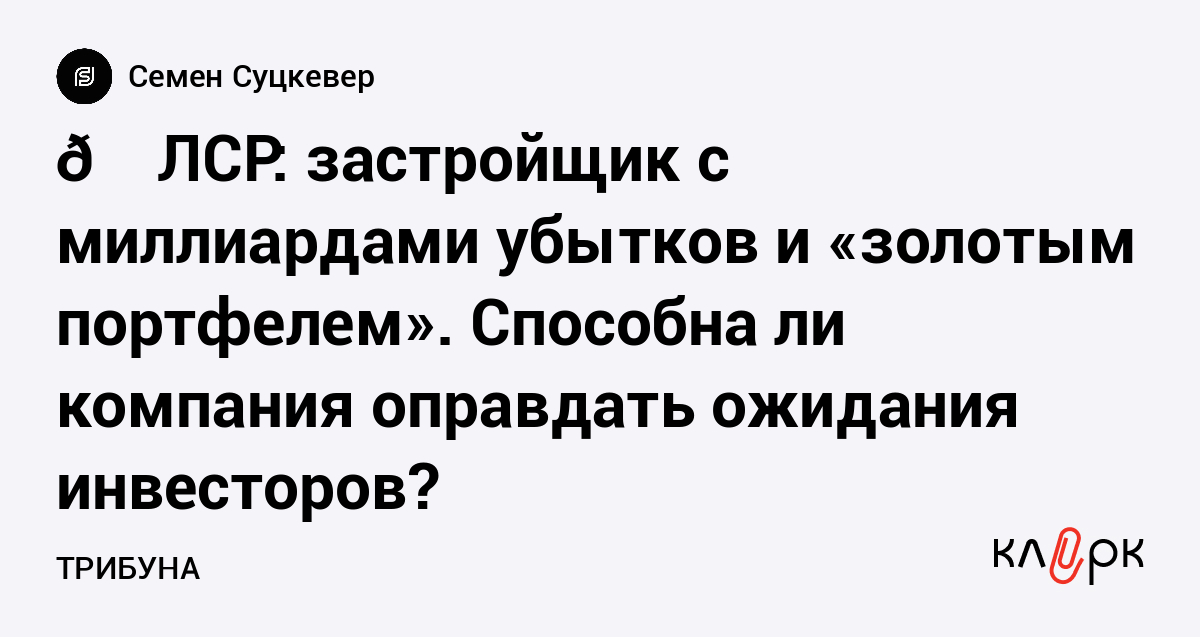 🏗️ ЛСР: застройщик с миллиардами убытков и «золотым портфелем». Способна ли компания оправдать ожидания инвесторов?