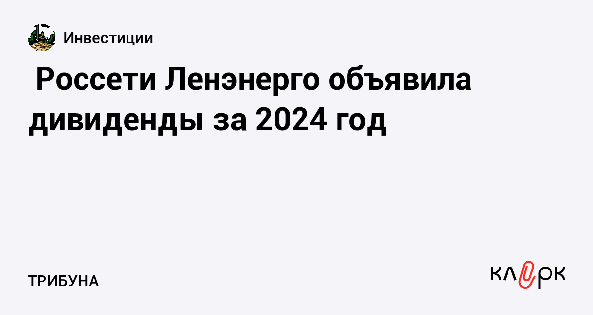 ⚡️Россети Ленэнерго объявила дивиденды за 2024 год