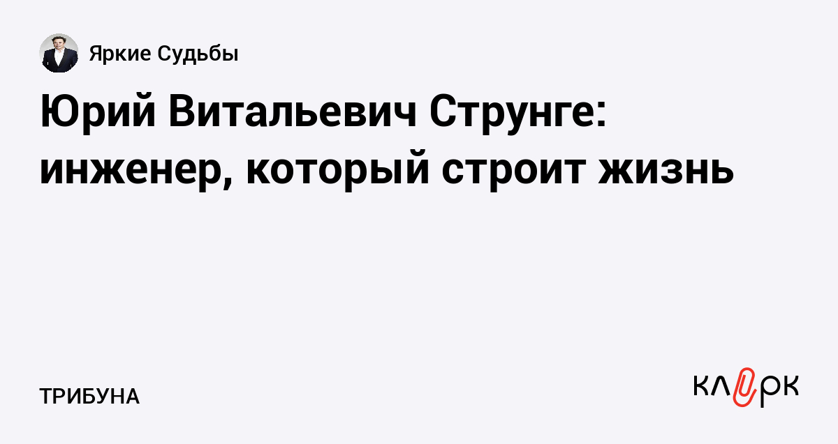 Юрий Витальевич Струнге: инженер, который строит жизнь