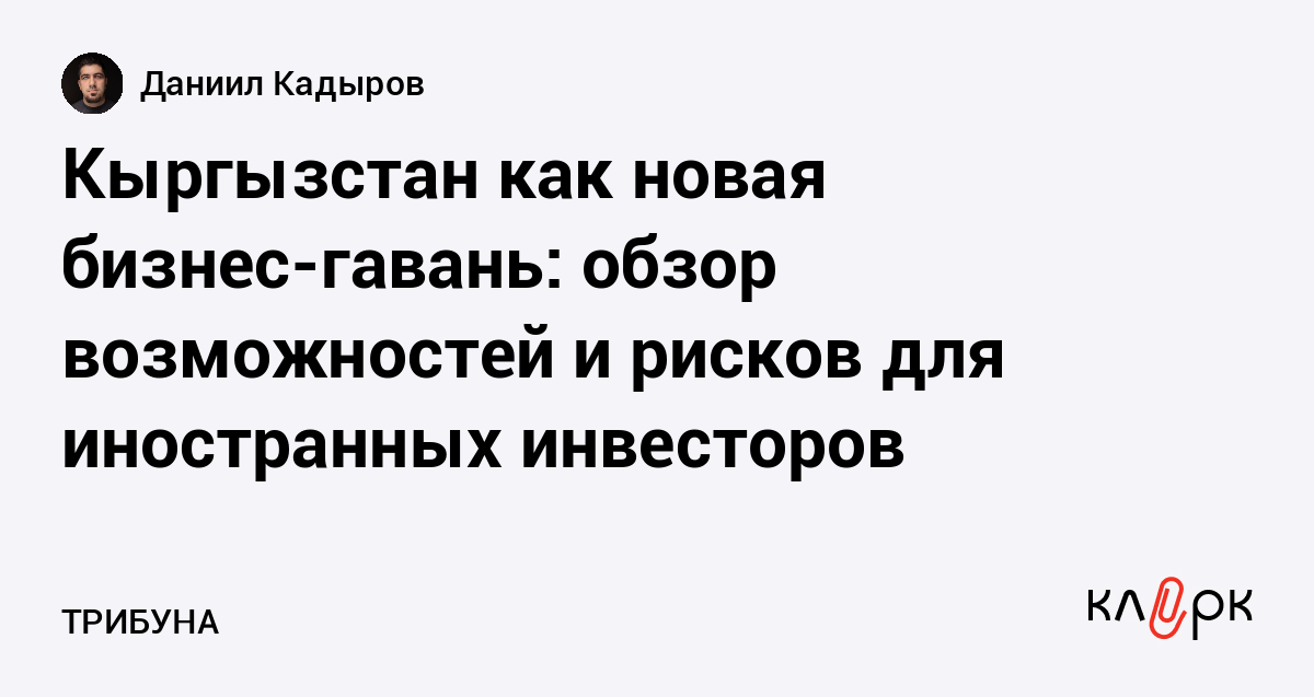 В последнее время Кыргызстан приковывает всё более пристальное внимание со стороны иностранных инвесторов и деловых кругов. Причинами растущего интереса служат не только сравнительно щадящее фискальное бремя и взносы, но и понятная, близкая российским предпринимателям правовая система, а также членство страны в Евразийском экономическом союзе.