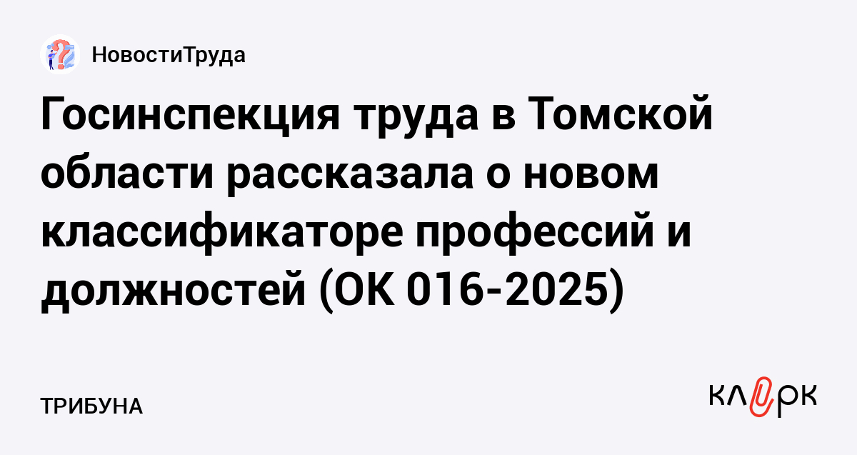Госинспекция труда в Томской области рассказала о новом классификаторе профессий и должностей (ОК 016-2025)
