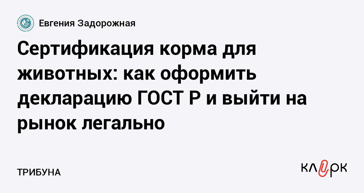 Сертификация корма для животных: как оформить декларацию ГОСТ Р и выйти на рынок легально