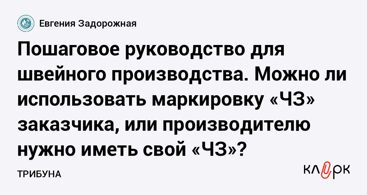 Пошаговое руководство для швейного производства. Можно ли использовать маркировку «ЧЗ» заказчика, или производителю нужно иметь свой «ЧЗ»?