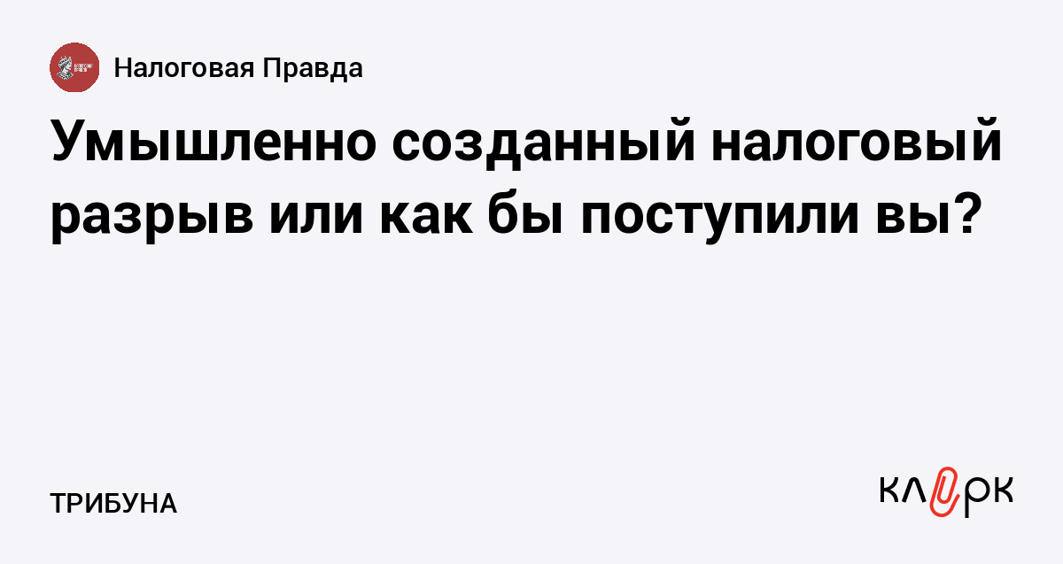 Умышленно созданный налоговый разрыв или как бы поступили вы?