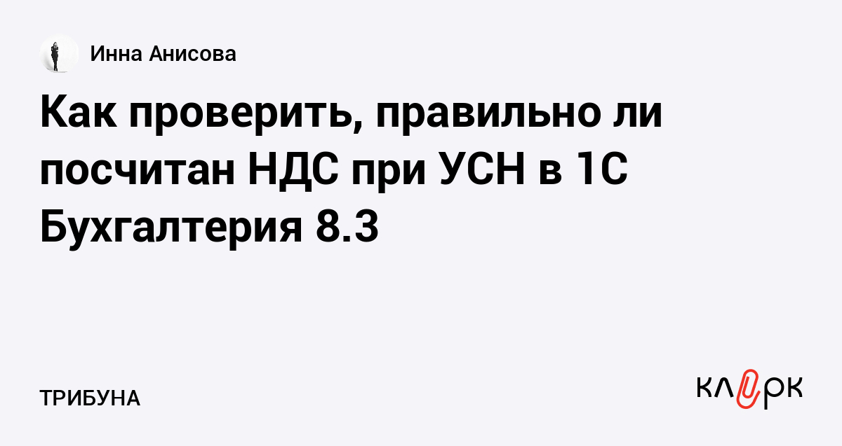 Как проверить, правильно ли посчитан НДС при УСН в 1С Бухгалтерия 8.3