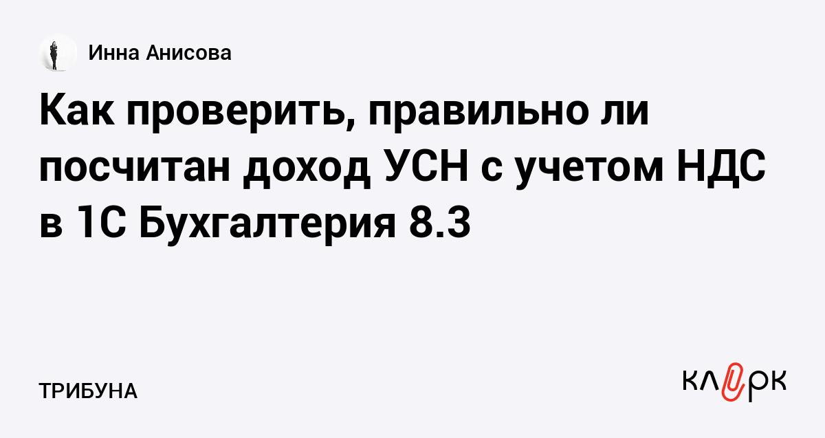 Как проверить, правильно ли посчитан доход УСН с учетом НДС в 1С Бухгалтерия 8.3
