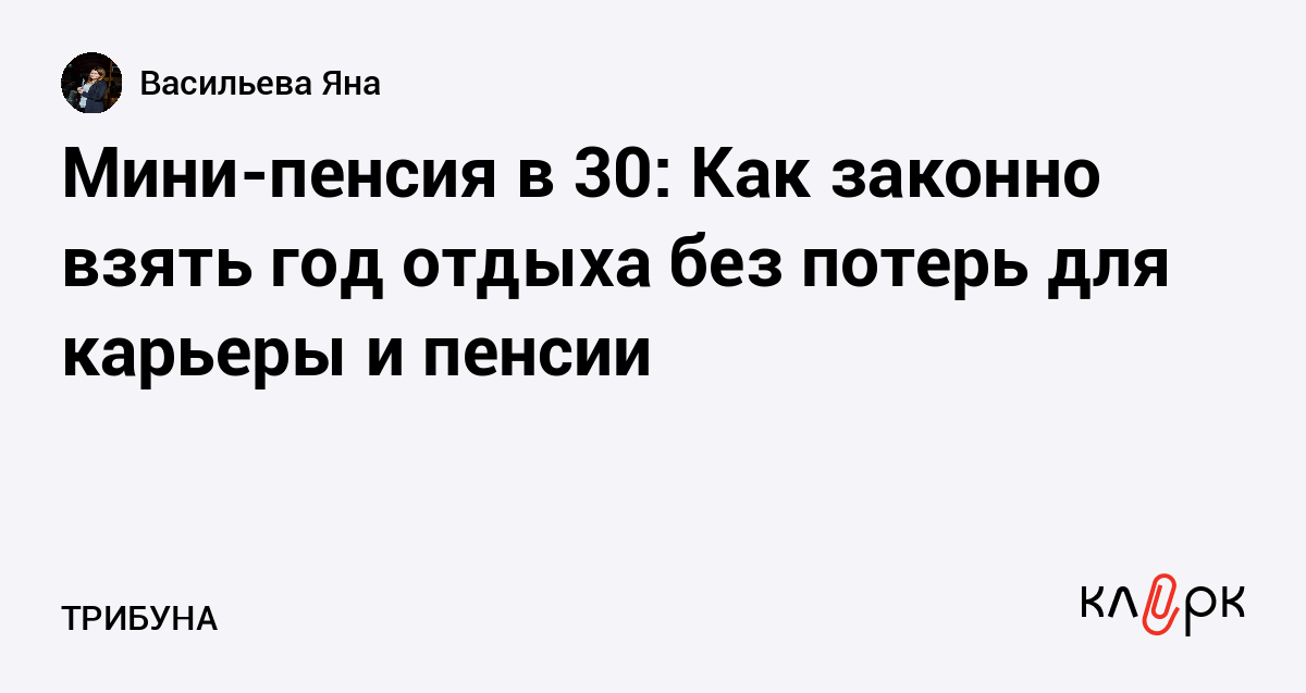 Мини-пенсия в 30: Как законно взять год отдыха без потерь для карьеры и пенсии