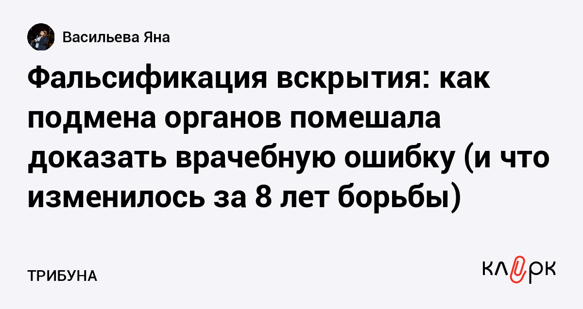 Фальсификация вскрытия: как подмена органов помешала доказать врачебную ошибку (и что изменилось за 8 лет борьбы)