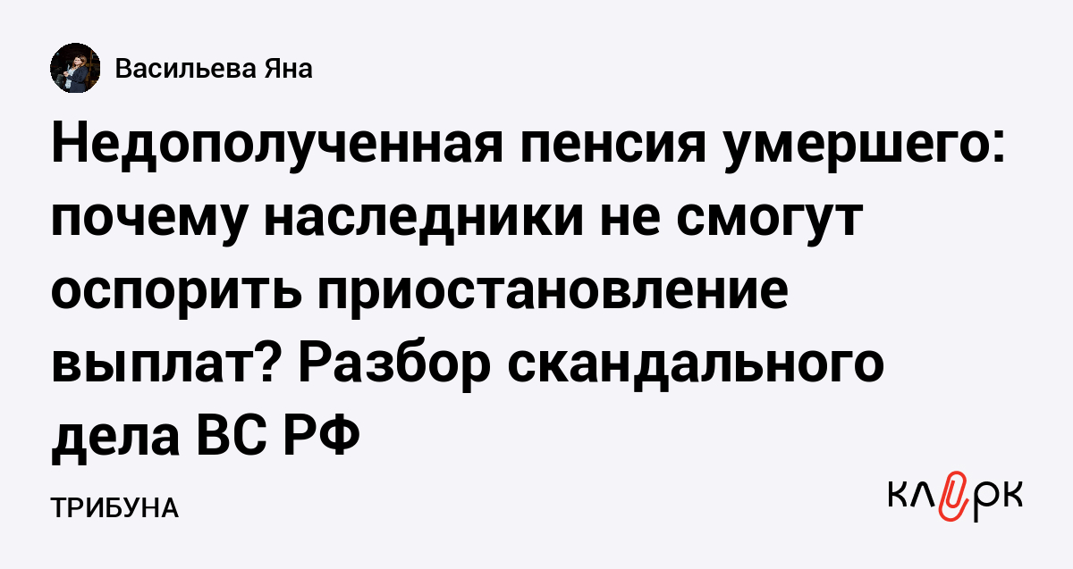«Пенсия — не имущество, а личное право. Как нельзя унаследовать право голоса или диплом врача, так и требование возобновить выплаты не переходит по наследству» (мотивировочная часть Определения ВС № 83-КГ25-1-К1).