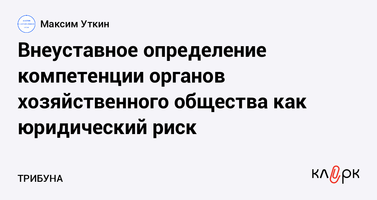 Внеуставное определение компетенции органов хозяйственного общества как юридический риск