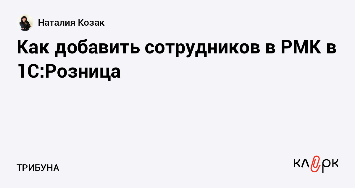 В этой статье мы рассмотрим, как правильно добавить сотрудников в РМК в 1С:Розница.