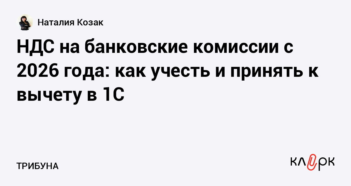 НДС на банковские комиссии с 2026 года: как учесть и принять к вычету в 1С